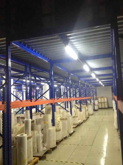 閣樓式貨架中,根據(jù)結(jié)構(gòu)不同,我們將一樓為貨架、二樓為平臺的,稱作為閣樓平臺。閣樓平臺主要是在一樓擺放一些小物品或規(guī)則型貨物,而二樓為開闊的空間,可以隨意擺放和布局。我們這次為印刷公司設(shè)計的,一樓為重型貨架,通過托盤來存取貨物,二樓平臺則擺放大件貨物。