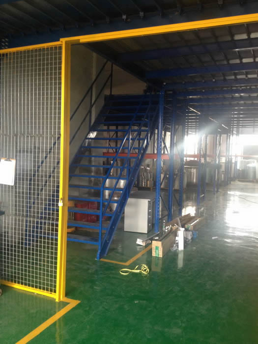 根據(jù)客戶要求,樓面我們使用了防銹性能良好的鍍鋅樓板。客戶多用來存放油墨等物品,容易對樓面的表面造成一些腐蝕,鍍鋅樓板從一定程度上,能避免這種腐蝕。