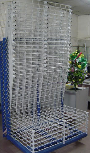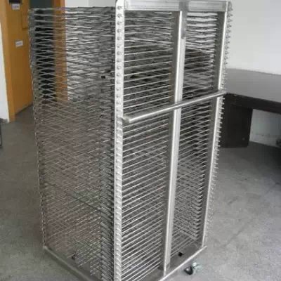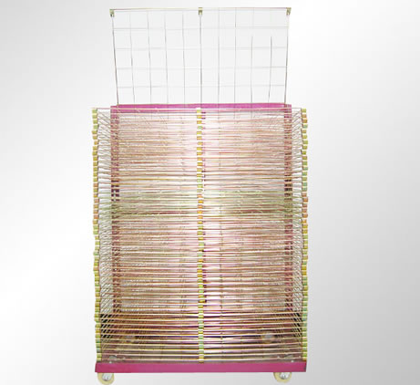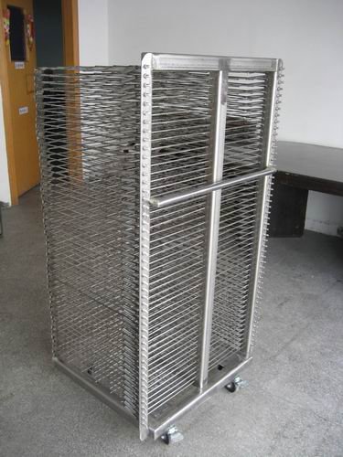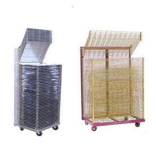 千層架,又叫絲印千層架、乾燥架、千層車、晾曬架、晾紙架、網(wǎng)架、層架臺車。適用于印刷、上膠、噴漆、上色,濺鍍後的晾乾置放器材;顒邮蕉鄬泳W(wǎng)格設(shè)計(jì),置放空間大,操作方便,節(jié)省車間、庫房面積,并可適用於所放產(chǎn)品的常溫晾乾和進(jìn)焗爐高溫烘烤。